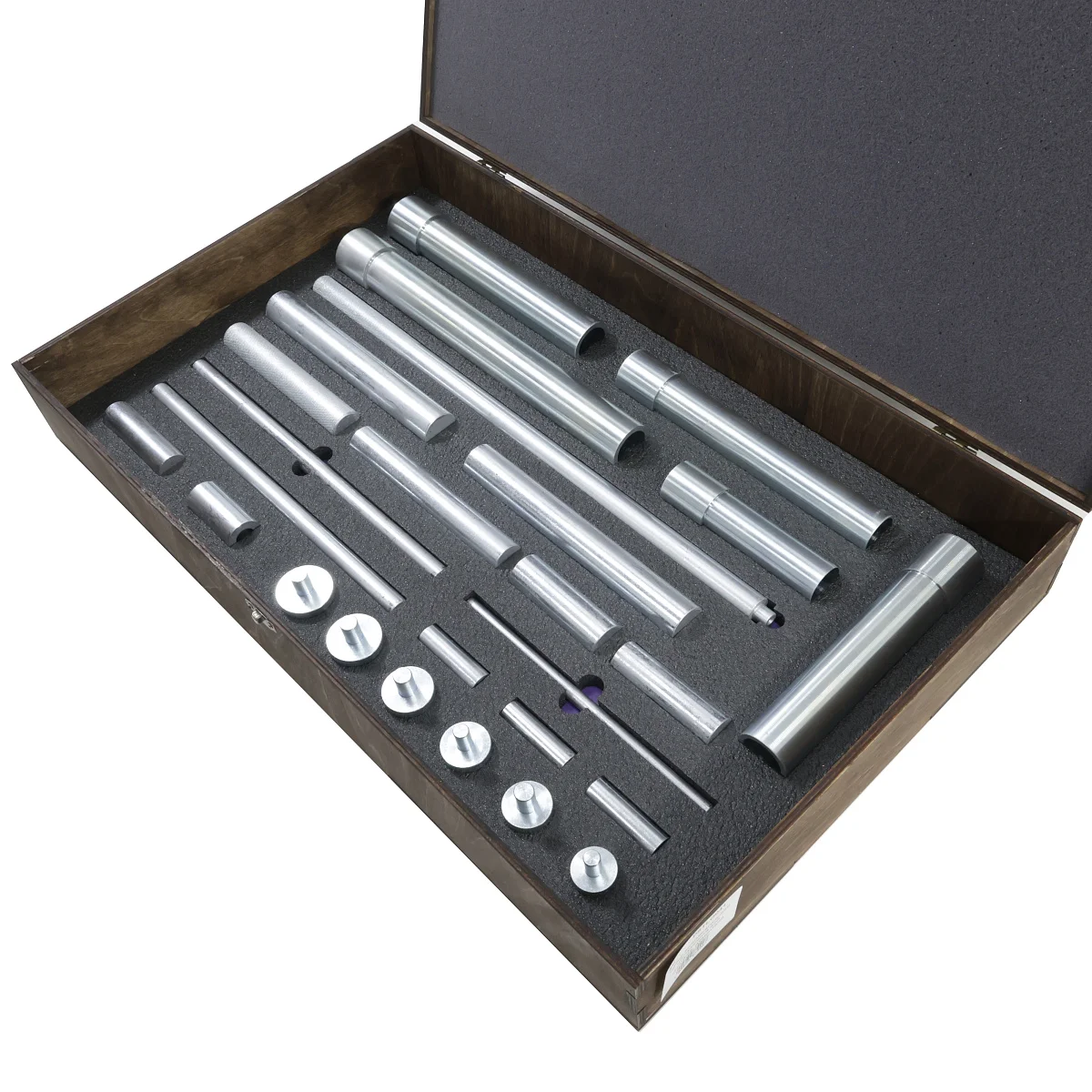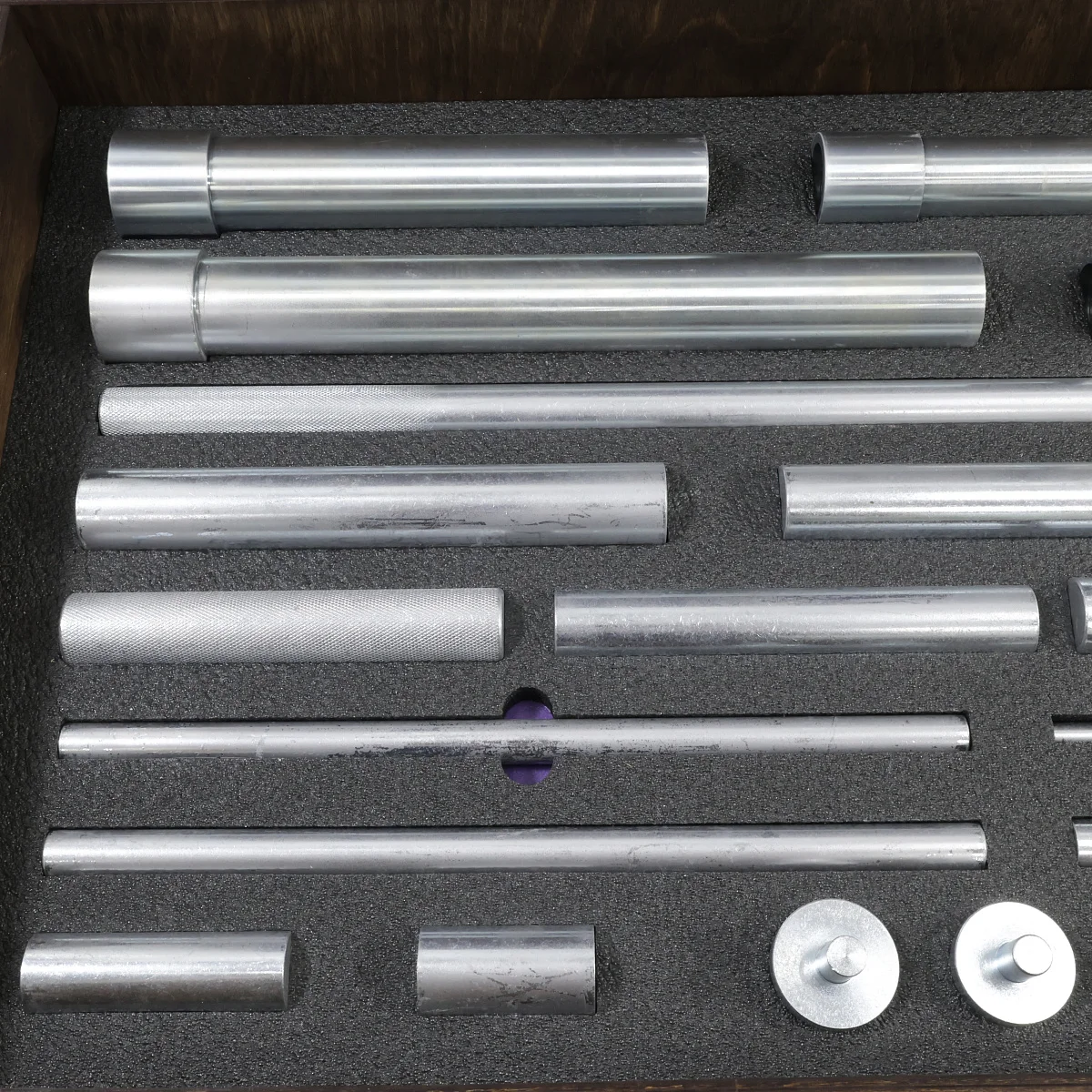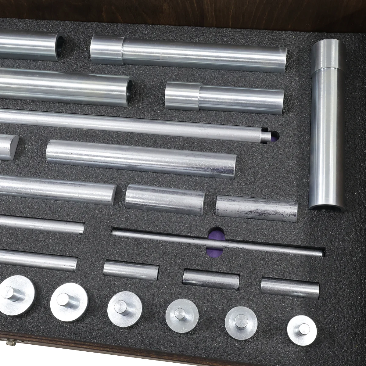 Набор оправок, монтажных приспособлений, вспомогательного инструмента для монтажа, демонтажа сальников, подшипников, втулок рулевых реек. Набор включает в себя комплекты для: запрессовки нижних подшипников, для запрессовки верхних роликовых и шариковых подшипников и верхних сальников, для демонтажа рулевых штоков и первичных штоков, для демонтажа средних подшипников селектора, для демонтажа верхних сальников и подшипников первичного вала.