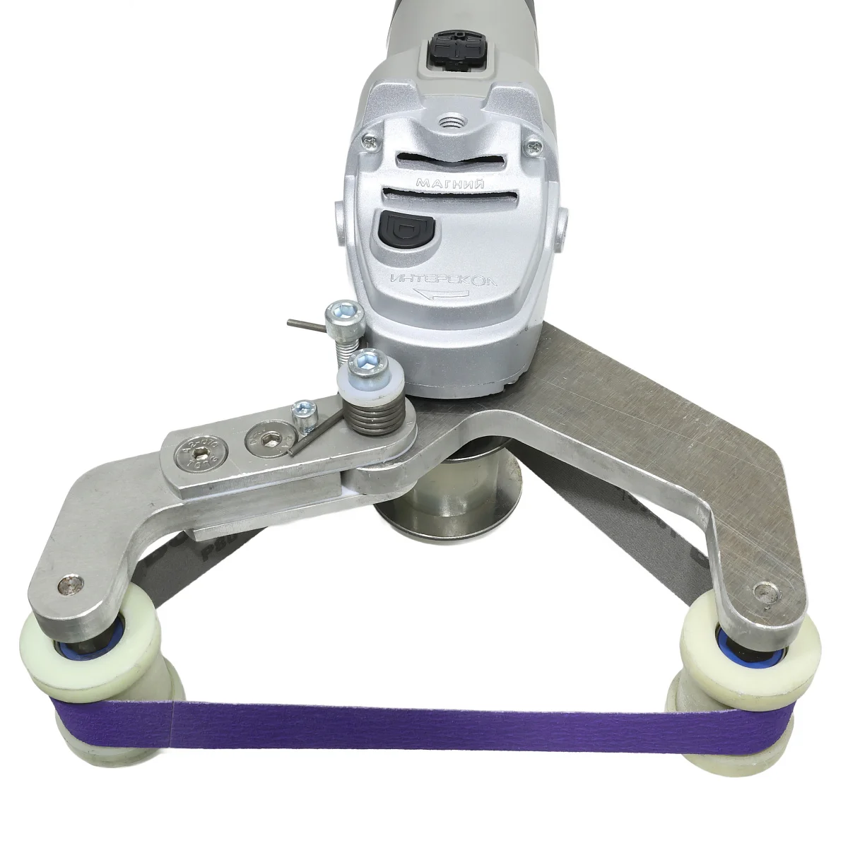 Шлифовальная машина с насадкой и регулировкой оборотов под ширину ленты 33мм и длину 610 мм. Предназначена для шлифовки и полировки рулевых штоков, первичных валов, втулок, корпусов и других цилиндрических поверхностей. Шлифовальные ленты в комплект не входят. Основная насадка изготовлена из легкого и прочного алюминиевого сплава. Ролики изготовлены из полиоксиметилена, разгоночный ролик изготовлен из полиуретана. Легкий вес инструмента обеспечивает удобную работу в любых условиях. Гриндер имеет регулировку оборотов, что позволяет шлифовать штоки, распределители, втулки и другие элементы быстро и с высокой точностью.