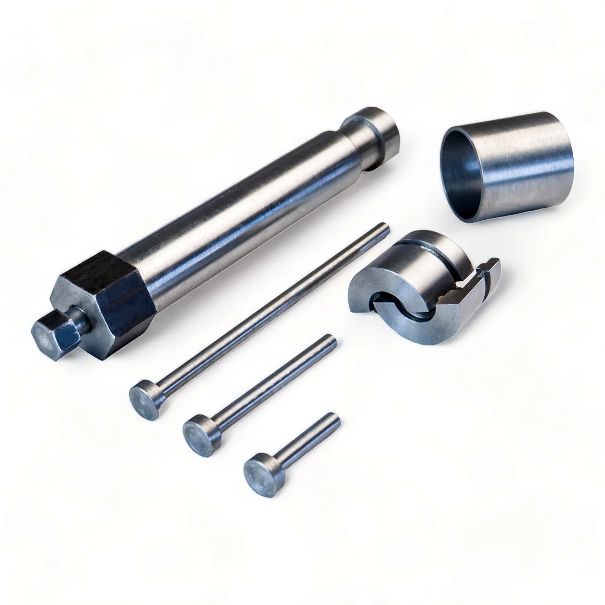 Комплект инструмента, позволяющего быстро и безопасно произвести снятие и установку удлинителя первичного вала рулевых реек Ford Focus 2, 3, Mondeo 4, Galaxy, S-Max, Volvo S60, S80, XC70, Land Rover Freelander 2. Снимать удлинитель первичного вала необходимо для замены верхнего сальника и подшипника.