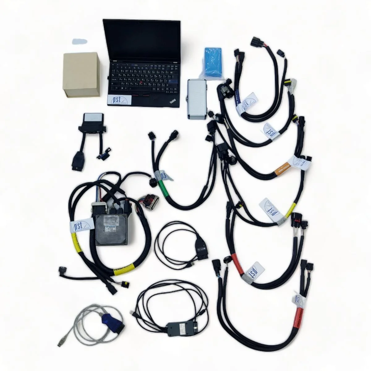 Набор кабелей, источник питания, ноутбук, блоки управления и др.: набор, позволяющий запускать, диагностировать, прошивать, кодировать рулевые рейки и насосы ЭГУР без необходимости установки на автомобиль. Набор не оснащен корпусом, является разборным, с возможностью размещения в отдельном помещении. Регулярно дополняется новыми кабелями и блоками управления.Набор оборудования для запуска, диагностики, калибровки рулевых реек с электроусилителем.